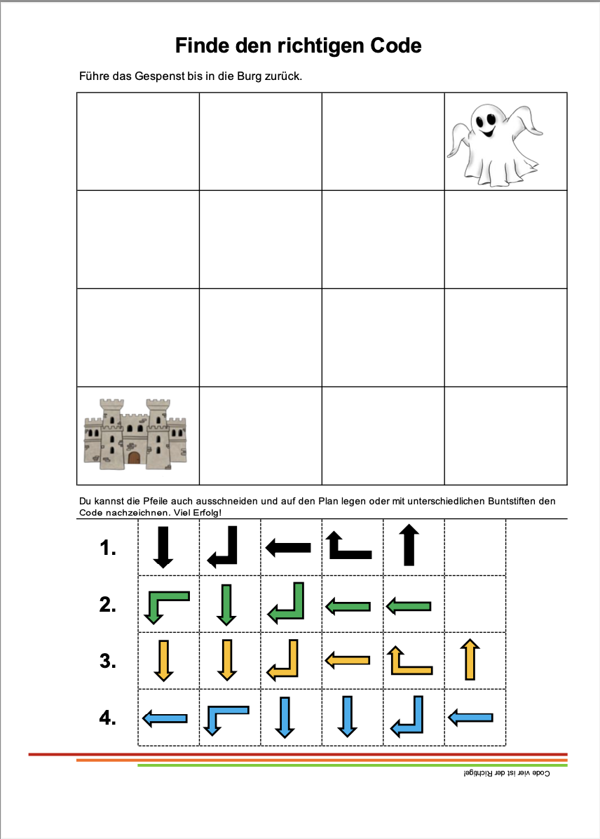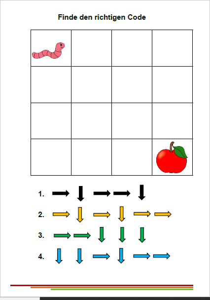 Welchen Code muss der Wurm nehmen um zum Apfel zu kommen? Klicke auf das Bild um das Blatt herunterzuladen